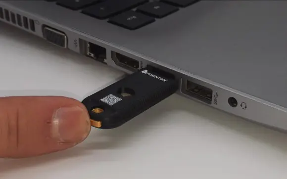 Have your authenton#1 ready? Have your authenton#1 security key(s) ready to plug into your computer. For security reasons the first set-up has to be via USB port (not NFC). You can use the USB-A or alternatively - the USB-C using an adapter. Adapter: USB-A to USB-C. Please use the authenton#1 in the setting-up preferably the same way you will plug it in / use it later when you authenticate to your selected services. | Prepare your Trusted Device Your trusted device for setting up, is your trusted Laptop, your trusted PC etc. For the set-up of your authenton#1 this device should not be a public PC or public Laptop (no Internet café's PC etc.)! Furthermore your PC / Laptop should have an up-to-date operating system with the latest security patches installed. Have a computer / Laptop running either Windows 10 (1903 or later) or any of the following with the Chrome browser 90 or later: